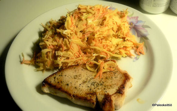 Tarjoa coleslawta paistettujen kalkkuna- tai broilerifileiden kylkiäisenä tai jauhelihapihvien kera. Tai ihan oikeiden pihvien kanssa! Aivan loistava perunan korvike, kun lappaa vaan riittävästi lautaselle (200-250 g/annos). Ei aivan täyspaleota, mutta kyllin lähellä kumminkin. Kelpaa! ;)