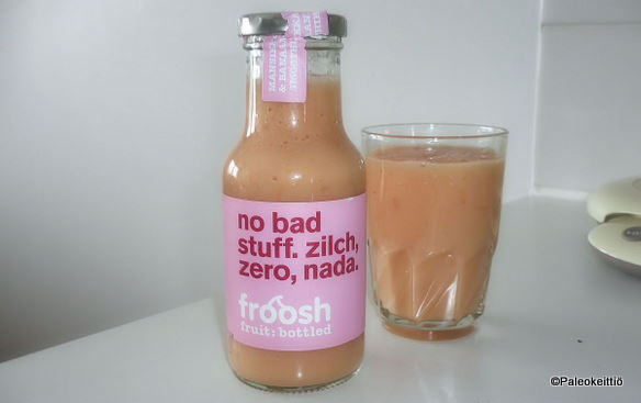 Pari annosta näillä eväillä tosta pyöräytti. Hedelmäpirtelöä mun makuun! Ja kannattaa muuten nauttia heti tuoreeltaan. Seistessään greippi ”karvaannuttaa” ikävästi makua.