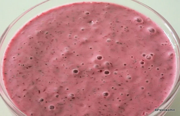 Puolukkavaahto syntyi pikkusiskoksi puolukkapuddinkille. Maitotuotteet ovat aika pitkälti pannassa. Olen joustanut hapatettujen maitotuotteiden osalta. Käytännössä se tarkoittaa luomuturkkilaista ja smetanaa. Nyt oli aika hankkiutua luomuturkkilaisestakin hetkeksi eroon, joten vaaleanpunakka sisko tehtiin kananmunanvalkuaisista. Ällöttävää! Mutta toimii. Myös oivana proteiinilisänä. Ja sanomattakin on hyvää. Paleoemäntähän ei pahaan kajoa! ;)
