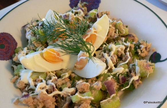 Tästä helppo lounassalaatti tonnikalasta kolmeksi päiväksi! Maku sen kun paranee, kun salaatti vanhenee. Kannattaa muutenkin valmistaa pari tuntia etukäteen jääkaappiin, jotta maut ehtivät tasoittua harmoniseksi kokonaisuudeksi. Hyvä esimerkki, kuinka pahasta tehdään hyvää. Ainekset sellaisinaan eivät ole välttämättä kovin nautittavia, mutta yhdessä vievät kielen ja mielen mennessään. Kokeile, vaikka et varsiselleristä tai punasipulista pitäisikään! Tonnikalastahan pitävät kaikki. Kehoilijat ;)