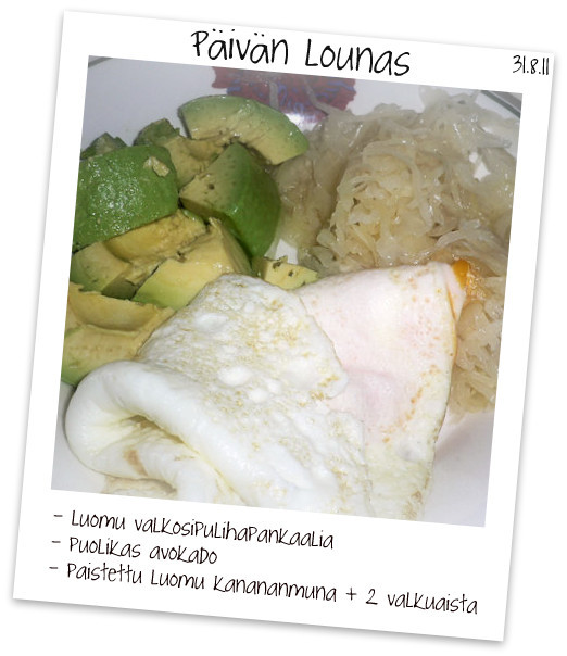 Ja myönnän, että proteiinit jäivät tällä aterialla vähiin, mutta paikkailen sitä myöhemmin protskudrinkillä ja ehkä palasella pastöroimatonta tuhkajuustoa =)