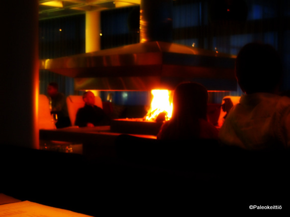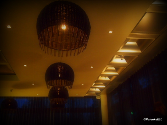 Alla pajukorin… Huomautin tarjoilijalle myös valaistuksesta. Kyllä mä nyt vaan haluan nähdä mitä suuhuni pistän. Pimeänäkö ei ole enää tässä iässä parhaimmillaan. Jossain vaiheessa valoa saatiinkin hippanen lisää, mutta myönsipä tuo tarjoilijakin olevansa pikkasen pulassa kun maksun aika koitti.