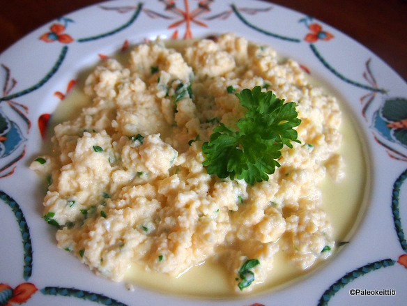 Eilen piti saada jotain helppoa ja haaleaa murkinaa. Ja jotain, joka pitäisi edes kohtuudella nälkää. Ei jaksa olla koko ajan puputtamassa. Päädyin perinteiseen munakokkeliin, jonka matalalla lämmöllä kattilassa hyydyttelin. Ja annoin kylmetä lautasella ennen nauttimista. Muutamia muitakin miltei purematta nieltäviä ruokia tuli päivän mittaan syötyä. Pitkästä aikaa mm. aitoa, oikeaa mansikkarahkaa. Kyllä vain, olen nyt jonkin aikaa kokeillut maitotuotteiden laajamittaisempaa palauttamista ruokavalioon. Kuten myös gluteiinittomien viljojen. Reissussa tosin tuli syötyä nirsoilematta sitä, mitä tarjolla oli, mutta palaan aiheeseen reissupostausten myötä myöhemmin.