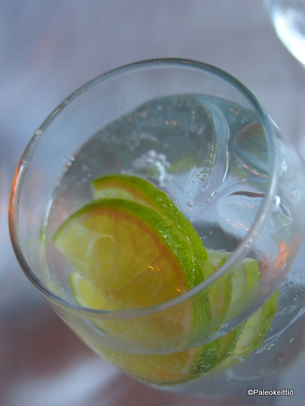 Seuralainen kuitenkin aloitti aterioinnin aperitiivilla. Lasissa tällä kertaa GT, josta minä nakersin limetin viipaleet. Sitruunat vaan sattuvat olemaan mun suurta herkkua. Sellaisenaan.