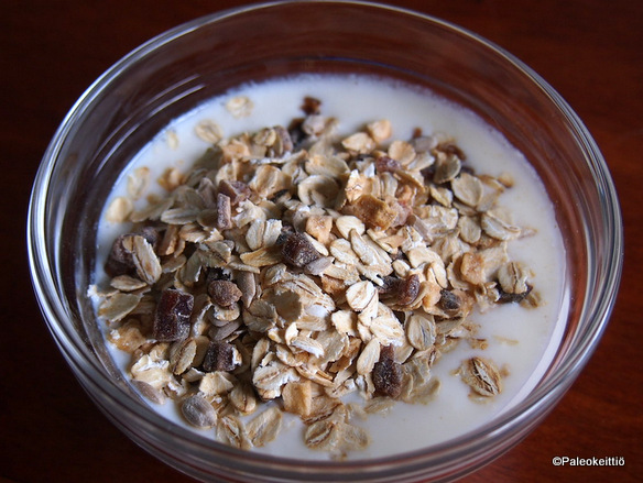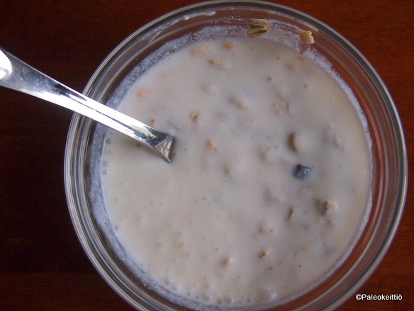Jonkin aikaa kokeilin sekoittaa ”aamiaismuroni” AB-piimään. Ei se ihan kefiiriä ollut, mutta maun puolesta menetteli kyllä. Muuten pidemmän päälle sitten ei. Keho ei pitänyt piimästä yhtä paljon kuin makunystyrät.