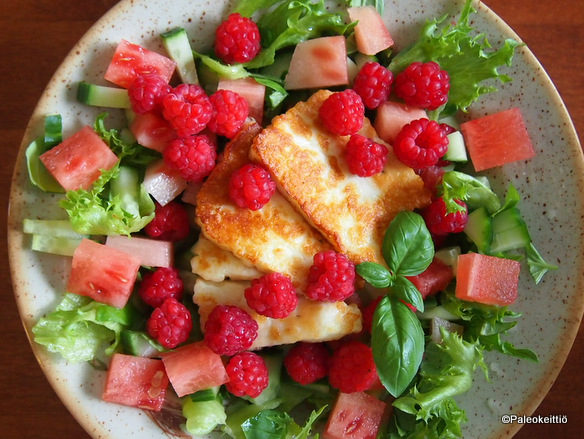Halloumi-vadelmasalaatti