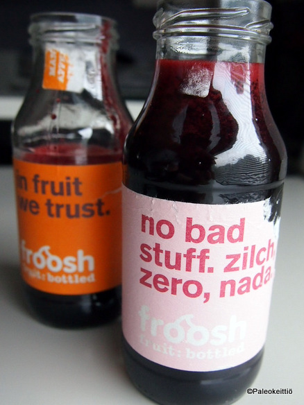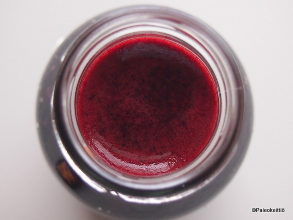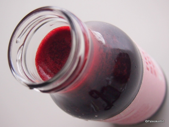 Tuorepuristettua mehua! Kuvissa tosin mustikka-viinirypälemehua kasvismehun sijaan. Melko samalta näyttää pullotettuna. Ja aivan loistava ja herkullinen tapa päästä nopeasti eroon jääkaapissa jo hieman nahistuneista ”syömämustikoista”. Viinirypäleet luomuna. Antamassa happamalle mustikkamehulle hieman makeutta. Sotkukin oli melko loistava; mustikat protestoivat mehulinkoon joutumista ja hypähtelivät kevyinä pitkin seiniä. Mustikkamaiseen tapaan jälkensä jättäen. Suuaukon kanssa kannattaa olla tarkkana. Saattaa selvitä pienemmällä sotkulla ;)