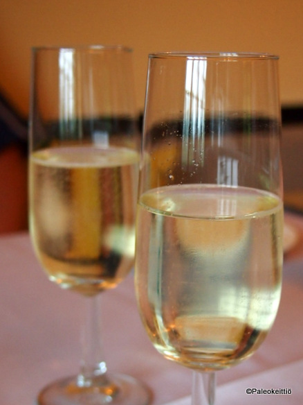 Syntymäpäivien kunniaksi aloitimme illallisen luonnollisesti kilistelemällä kuohuvia maljoja. Maljoissa makea Cinzano Asti, joka sopi tilanteeseen täydellisesti. Itse olen enemmän kuivien juomien ystävä, mutta vaihtelu virkistää ja valehtelisin, jos väittäisin etteikö makea malja olisi maistunut. Hyvä ja helppo valinta kokemattomammallekin kuohumaljan nostajalle.