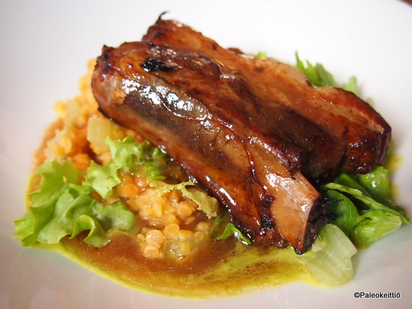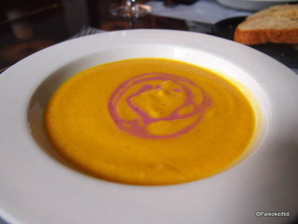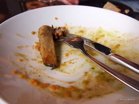 En nyt tietenkään enää kuollaksenikaan muista mitä päivän business -lounaaksi oli tarjolla. Alkuruoaksi mitä luultavimmin kukkakaali-porkkanakeittoa (vai oliko se kuitenkin kurpitsaa…). Pääruokana ainakin suuhun sulavaa ”possun läskipalaa”. Kuten kuvasta näkyy, niin läskit (eli jöitskyt), jotka yleensä erottelen lautasen reunalle, tuli imettyä viimeiseen pisaraan saakka. Ihan mahtikamaa! Kyllä rasva on poikaa! Kun sen oikein osaa valmistaa =)