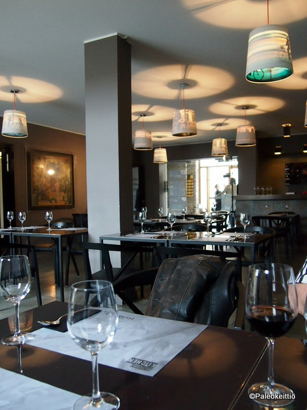 Lisää hataria mustikuvia Riiasta. Sateisena kauppahallipäivänä suunnistimme lounaalle kauppahallien takana sijaitseviin taidekortteleihin. Olin bongannut Ravintola Kitchenin jo aiemmin jostain turistioppaasta. Alue vaikutti hippasen kolholta, mutta onneksi sinne tuli kuitenkin suunnattua. ”Keittiö” nimittäin palkitsi avokätisesti ja voin suositella sitä(kin) oikein lämpimästä. Aivan huippuhyvä kolmen ruokalajin lounas! Ja mihin hintaan! Viineineen ja jälkkärikahvitteluineen tietenkin. Täältä sain muuten koko reissun parasta kahvia. Kinuamalla irtosi nimittäin vihdoinkin mukaan kunnon kermaa!