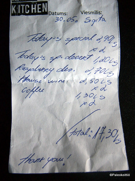 Loppuun vielä pieni lasku. Kuitista otin kuvan ihan vaan siksi, että se oli musta epävirallisena niin hauska ;). Koko komeus kahdelle irtosi tosiaan reilulla 25 egellä. Not bad! Kotomaahan verrattuna. Jossa saa jo pelkkiin tämän aterian juomiin uppoamaan yhtä paljon.