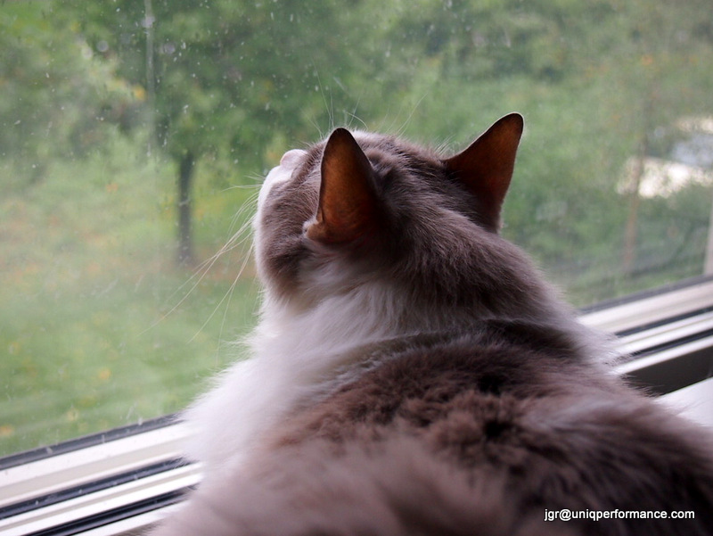Loppuun vielä pisaroiden bongausta ja sadepäivän haaveilua nokka kiinni lasissa. Tätä on harrastettu useamminkin. Kuten ikkunasta näkyy. Eikä laiska siivooja tee asiaa (tai ikkunaa ;)) yhtään kauniimmaksi. Niissä puuhissa pitäisi tämän emännän nimittäin olla parhaillaankin, mutta kummasti kaikki muu on mukavampaa. Jopa sadepisaroiden bongailu. Ja joka hemmetin sunnuntai! Kivat viikonlopun viimeiset kuitenkin kaikille! =)