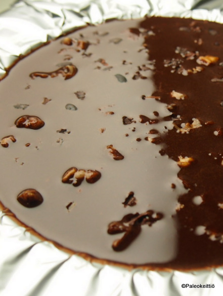 - raakakaakaorouhetta ja murskattuja saksanpähkinöitä