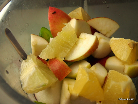 - pieni kourallinen luomucashew -pähkinöitä (=15 g punnittuna)