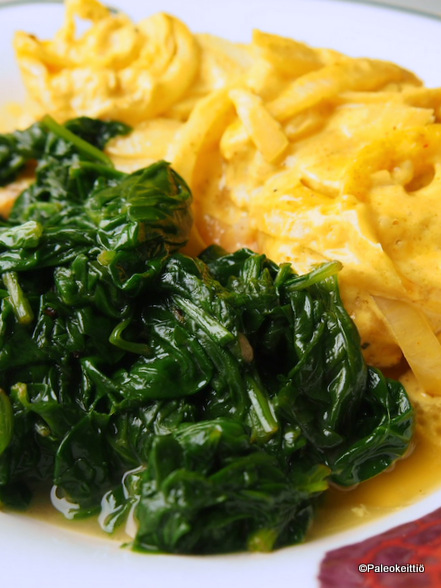 Tavallisesti uuniloheni saa purjolla, tillillä ja sitruunalla maustetun kerma-smetanahunnun. TehoPaleolla piti keksiä jotain muuta. Kookoskerma korvaa kätevästi lehmän kerman. Hieman googlausta ja siitä se ajatus sitten lähti! Muille maille lämpimille =)