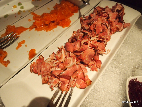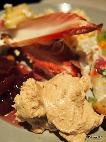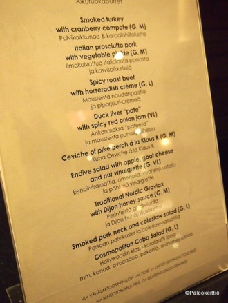 Ihan mukavasti alkoi alkuruokien jälkeen nälkäinen vatsa täyttyä. Alkuruokapöytä oli tuttuun tapaan monipuolinen, mutta jollain tapaa päällimmäiseksi adjektiiviksi kielelle jäi mauttomuus… Sanoisin kuitenkin, että alkuruokapöytä oli koko aterian parasta antia. Ja ankanmaksepatee punasipulihillokkeella taivaallista!