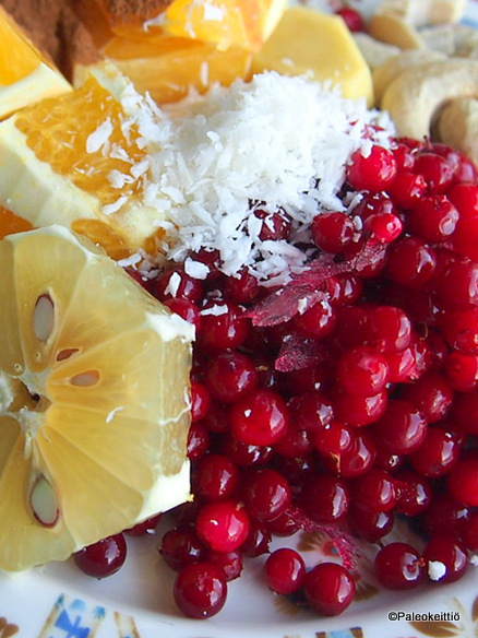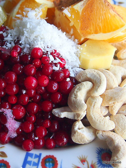 ”Katkera appelsiini” sai nimensä facebook -ristiäisissä. Jos joku ei muuten ole vielä tietoinen, niin Paleokeittiön tapahtumia voi seurailla myös UNIQ Performancen facebook -sivulla. Huutelin siellä nimiehdotusten perään ja esiin pompsahti ”Bitter orange”, joka taipui mun flunssaisessa päässä ”Katkeraksi appelsiiniksi”. Kirpeä appelsiini kuulosti niin tavanomaiselta ja tylsältä… Esikuvana ”katkeralle” toimi serkku ”jouluinen”.