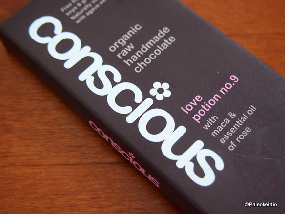 Conscious -raakasuklaat ovat parhaita! Joita valmiina saa ja joita olen toistaiseksi maistanut. Mikäänhän ei voita itse rakkaudella hämmennettyä raakasuklaata, mutta joskus sitä täytyy päästä helpolla tässäkin asiassa. Viikonloppuna ”rakkaussuklaa” veti puoleensa. Jos rakkautta ei löydy ilmasta, niin sitä löytyy ainakin suklaasta, ruususuklaasta. Hmmmm… kokemus oli mielenkiintoinen; kuin ruusunterälehtiä olisi imeskellyt. Mutta tulipahan testattua tämäkin! Ensi kerralla valitsen kuitenkin toisin. Ruusu suussa ei vaan iskenyt. Minttu toimii edelleen parhaiten. Conscious -suklaita löytyy mm. hyvinvarustelluista luontaistuotekaupoista ja osoitteesta xoco.fi. Suosittelen! =)