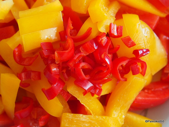 Tässä ne nyt viimein ovat! Saanko esitellä, ensimmäistä kertaa Paleokeittiössä ever… bataattiranskalaiset! Bataatti kun ei ole makeutensa vuoksi aikoihin viihtynyt Paleokeittiössä. Enkä koe minkäänlaista himoa rasvaisia ranskalaisiakaan kohtaan. Mutta joskus kannattaa unohtaa rajoittuneisuutensa ja kokeilla jotain uutta. Melko helppoa ja yllättävän hyvää! Toivotan ranskalaiset tervetulleiksi toistekin. Ensi kerralla ehkä palsternakasta… Tapoja valmistaa bataattiranskalaisia on varmasti yhtä monta kuin emäntääkin. Pyrin imitoimaan rapeita ranskalaisia. Siinä osin onnistuinkin. Suurin ongelma ilmeni todennäköisesti omassa tehokkuudessa. Tikutin noin puolitoista isoa bataattia, jotka eivät mahtuneetkaan yhdelle uunipellille. Ja kun normiuuniin peltejä tökkää kaksi päällekkäin, niin ei homma oikein toimi optimaalisesti. Toiset olivat rapeita alta, toiset päältä. Kuori bataatit ja pilko ne veitsellä melko ohuiksi tikuiksi viileään vesiastiaan. Nosta tikkubataatit uunipellille ja kuivaa ne huolellisesti. Itse käytin tähän imukykyistä talouspaperia. Tosin olin hieman laiska, enkä jaksanut kääntää ja kuivata toiseltakin puolen vaan annoin leivinpaperin hoitaa hommansa sen minkä se siihen kykeni. Kuivauksen jälkeen laita noin ruokalusikallinen kookosöljyä riittävän isoon pakastepussiin. Sulata juoksevaksi joko ennen pussiin menoa tai sen jälkeen, kuten itse tein. Kiinteä kookosöljy pussiin ja pussi hetkeksi kuumaan veteen. Olomuodon vaihto on …