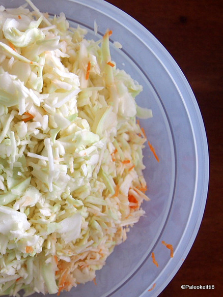 Siinä se taas on! Viime viikon teemaruoka ja muutenkin vanha, tuttu juttu. Kaaliraastesalaatti! Paljoakaan ei ole simppeli resepti vuosien varrella muuttunut, mutta kyllähän hyvästä kannattaa aina silloin tällöin muistutella ;)