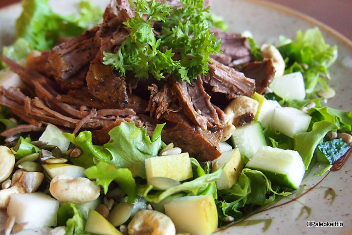 Aloitin kefiirikokeilut noin vuosi sitten. Sen jälkeen olen kypsytellyt maitopohjaista kefiiriä kausittain (myös raakamaidosta). Kefiiri on kyllä hyvää, mutta maitotuotteiden nauttiminen päivittäin ei vaan itselleni sovi. Jonkin aikaa sujuu hyvin, mutta ennemmin tai myöhemmin keho alkaa protestoimaan myös hapatettuja ja muita paleoystävällisiä maitotuotteita vastaan. Kefiiriongelmaan vastaus on löytynyt kookostuotteista. Muutamia kokeiluja olen tehnyt ja todennut helpoimmaksi ja parhaiten toimivaksi kefiirinaluksi iHerbistä tilaamani YoGourmetin Kefir starterin. Maitohappokapselikokeilut sen sijaan menivät täydellisesti viemäriin. Kookosmaito ei niillä hapattunut miksikään. Tämä sai nyt tietysti hieman epäilemään käyttämäni maitohappovalmisteen tehoa… KOOKOSKEFIIRI kookosmaitoa tai -kermaa (olen käyttänyt kookosmaitoa) YoGourmet Kefir starteria Sopiva määrä kookosmaitoa puhtaaseen, lasiseen, kannelliseen purkkiin. Kefiirin alkua sopivasti sekaan ja sekaisin (sori, ettei ole tämän tarkempia määriä. Olen toiminut fiiliksellä =D). Kansi päälle ja purkki uunin pimentoon odottamaan hapantumista. Olen hapattanut kefiiriä välillä pidemmän, välillä vähemmän aikaa, mutta jotain 24 ja 48 tunnin väliltä. Huom. Älä laita uunia päälle kun kefiiri on siellä kypsymässä ;) Siirrä valmiiksi hapatettu kefiiri jääkaappiin, jossa hapatusprosessi pysähtyy. Jossain näin ohjeen 4-5 tunnin jääkaappisäilytyksestä. Itse olen laittanut valmiin satsin illalla jääkaappiin ja nauttinut …