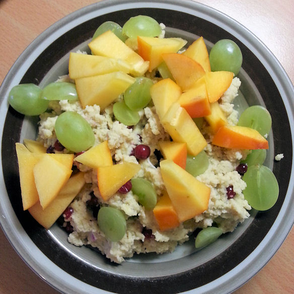 • Makeuta puolukkapuuro päälle laitettavilla hedelmillä.