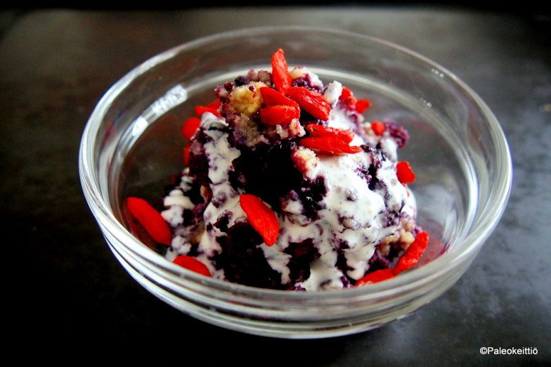 Operaatio pakkasmarjat pois pakkasesta jatkuu! Tällä kertaa lähdin hieman yllättäen piirakkalinjalle. Eikä se tietenkään mennyt heti kerralla putkeen vaan pariin otteeseen jouduin harjoittelemaan piirakan paistoa. Newbie, mikä newbie! Ensimmäinen erä kelpasi itselleni vallan mainiosti, mutta se tuskin olisi kelvannut kellekään muulle. Ja siinä asiassa sain huomata olevani harvinaisen oikeassa ;) Pohjaton piirakka on ihan hitokseen helppo ja melko nopeakin. Salaisuus piilee pohjattomuudessa. Tästä selviää ilman suurempaa taikinan vatkausta. Tosin, jos haluat oikeaa kuningatarpiirakkaa, niin tee taikina tai osta sellainen. Vaikka pohjaton onkin hyvää, niin eihän se aidolle vertoja vetele. En ihan periaatteesta pidä paleoimisesta, koska paleoimisessa on yksi iso ongelma. Ja se ongelma on aitoudessa. Jäljitelmä mikä jäljitelmä, ei siitä mihinkään pääse. Mutta! Joskus jäljitelmä ajaa aidon ohi. Se ei välttämättä mene ohi maussa tai suutuntumassa, mutta terveemmän nimissä olen joskus valmis tinkimään näistä pikkuasioista. Ja silloin, kun en ole valmis tinkimään, niin en tingi ;) Ensimmäinen yritys kosahtu makeuteen. Tai sen puutteeseen. Kuten jo mainitsin, niin sopi mulle vallan mainiosti, mutta halusin vielä väsätä jotain kaikelle kansalle sopivampaa. Niin tein! Ja se taas toi …