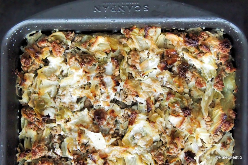 Kaalilaatikko – niin tavallista, vähän väritöntä, mutta niin hyvää! Etenkin juuri nyt pehmeästä varhaiskaalista valmistettuna. Tämä on nähty Paleokeittiössä aiemminkin, mutta kyllähän kaalilaatikko yhden noston kerran parissa kolmessa vuodessa vähintään ansaitsee!