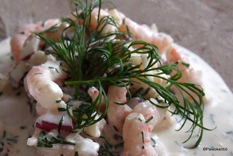 Lihattomasta viikosta on jo ikuisuus ja postauksia roikkuu jonossa useampikin, mutta jatketaan nyt tällä kertaa tästä. Kun tuli aikanaan luvattua. Vaikka kroppa sanoi punaiselle lihalle stop, niin jokin lihaisa sentään maistui. Todella pitkästä aikaa käännyin katkarapujen puoleen. Villikissatkin tykkäs ;) Tarkkaa muistikuvaa ei reseptin aineksista enää ole, mutta perusreseptilläkin pääsee jo pitkälle. Jollain tavalla makuaistin varassa tätäkin tuunasin. Taisin lisätä valkoviinietikkaa lisäämään happoisuutta, kun majoneesivarannot loppuivat hitusen kesken. Hiukan olisi voinut katkarapuja sulatella ja kuivatella paremmin, mutta eihän malttamattomalla ollut sellaiseen aikaa. Seurauksena turhan vetinen ja löysä hässäkkä, joka riisikakun päällä syötäessä oli all over the place! KATKARAPUHÄSSÄKKÄ aka SKAGENRÖRA på svenska 1 pss pieniä katkarapuja (180 g) ~3 rkl creme fraichea (1/2 dl?) ~3 rkl luomumajoneesia pieni tai puolikas punasipuli 1-2 rkl sitruunamehua mausteeksi paljon tuoretta tilliä, mustapippuria ja suolaa Sulata, puristele kuiviksi ja kuivaa katkaravut hyvin. Puristeluun käytin siivilää, jonka reunoja vasten painoin ylimääräiset vedet pihalle. Kuivaamiseen kelpaa talouspaperi. Pilko punasipuli pieniksi kuutioksi ja hienonna tilli. Lisää katkarapujen kaveriksi. Sekoita creme fraiche, majoneesi ja sitruunamehu. Mausta seos suolalla ja mustapippurilla. Tarkista maku ja …